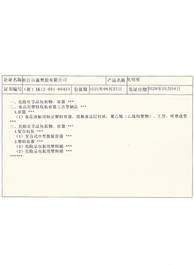 公司地處"長三角一體化示范區(qū)”嘉善縣內(nèi),廠區(qū)占地20畝,建筑面積23777.77平米?,F(xiàn)擁 有十六條全自動塑料桶生產(chǎn)流水線,其中包含一條IBC噸桶生產(chǎn)線。日生產(chǎn)塑料桶7000只,年銷售 額達1.2億。公司先后取得IS09001質(zhì)量體系認(rèn)證;全國工業(yè)生產(chǎn)許可證(食品級);全國工業(yè)生 產(chǎn)許可證(危包級);出口危險貨物包裝容器質(zhì)量許可證醐代碼:C293040)及中國船級社認(rèn)證。公司專業(yè)生產(chǎn)塑料桶近30年,_貫堅持,質(zhì)量第一、用戶至上、價格適中、優(yōu)質(zhì)服務(wù)“理念, 竭誠歡迎新老客戶前來洽談業(yè)務(wù)。